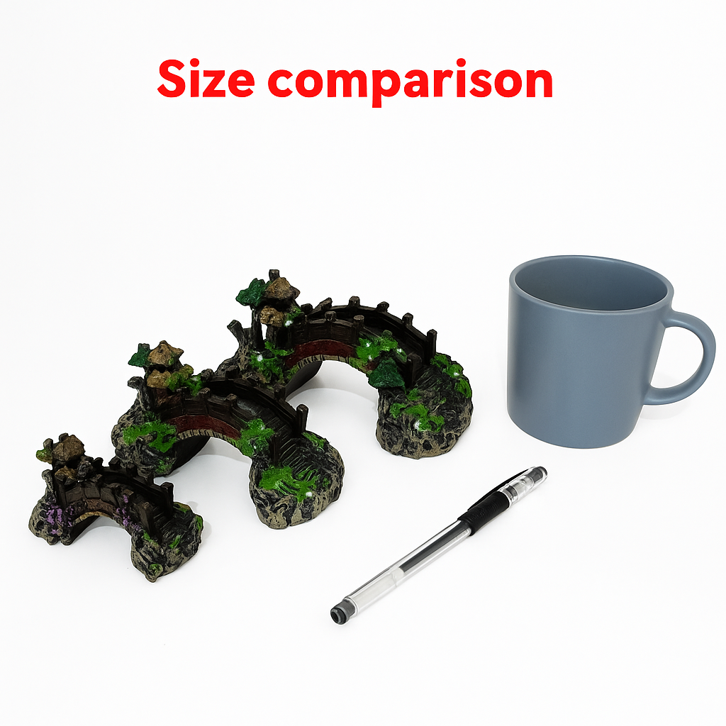 Multiple Size Choices: Choose from three sizes to fit your aquarium needs: Mini – 3.5 × 1.6 × 1.6 in, Small – 5.5 × 2.6 × 2.6 in, and Medium – 7.1 × 3.5 × 3 in. These versatile sizes make the resin bridge suitable for nano tanks, medium aquariums, or larger aquascapes.