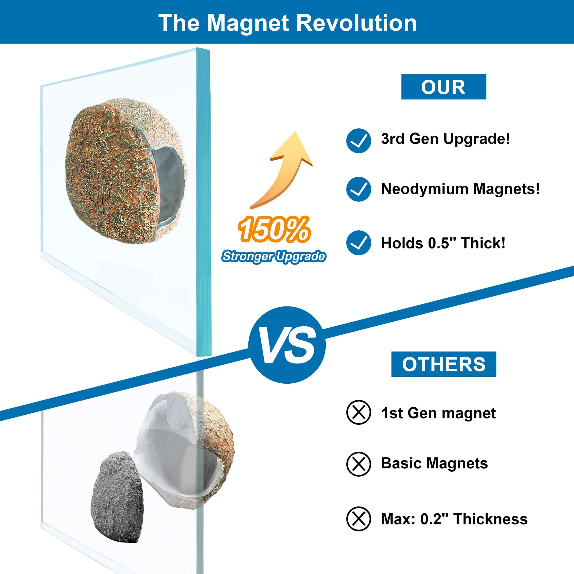 Upgraded Magnetic Grip: Our 3rd‑Gen neodymium magnets deliver a stronger, steadier hold on glass or acrylic up to 0.5" thick. Before purchasing, confirm your tank wall thickness; magnetic hold is stronger on thinner walls and weaker on thicker panes.