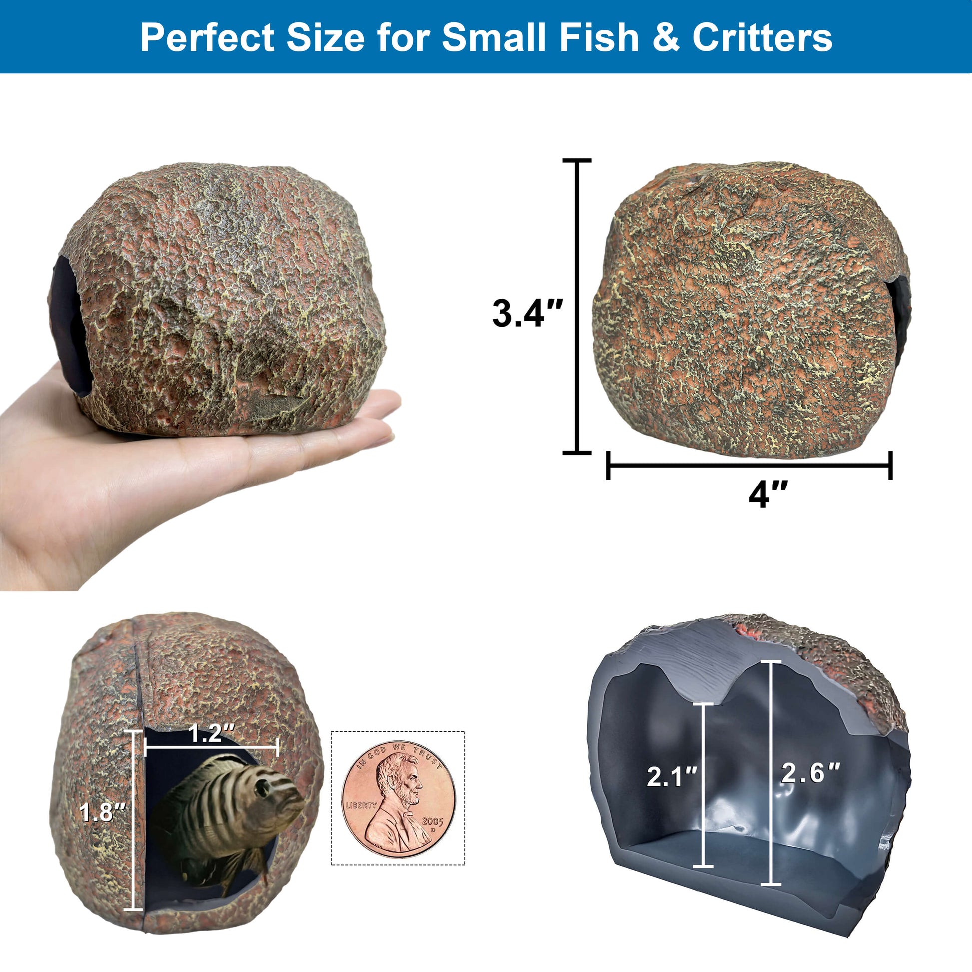 Multi‑Species Retreat: Perfect for small fish and petite reptile pets like geckos, small chameleons, crabs, spiders and scorpions. This magnetic aquarium cave doubles as fish tank decor and a snug hideout for aquatic and amphibious companions.