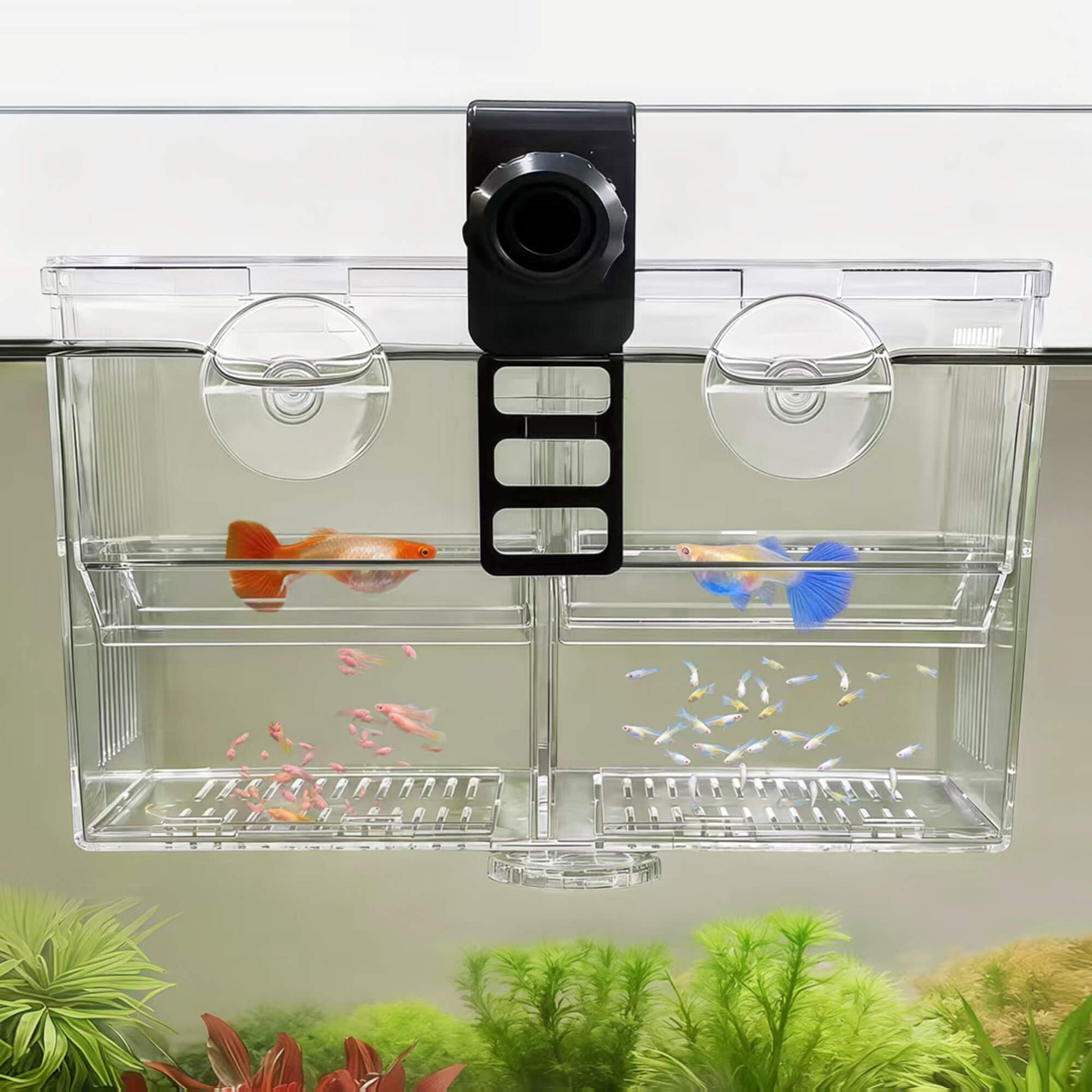 - Breed, Isolate, Raise - All-in-1 Box: Serves as a hatchery for livebearers like guppies and mollies, an isolation/quarantine cage for sick or aggressive fish (e.g., bettas), a dedicated acclimation space for introducing new fish, and a protected zone where shrimp can molt or feed with confidence.