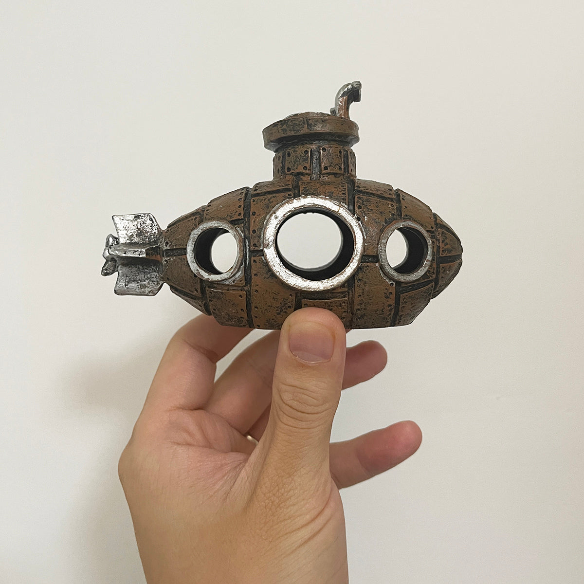 Vintage Submarine Aesthetic: Classic rivet and panel details create a playful focal point that complements natural or themed aquascapes.