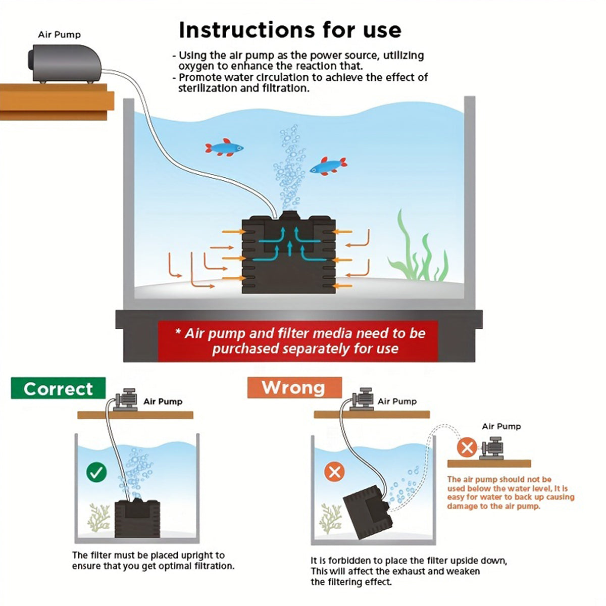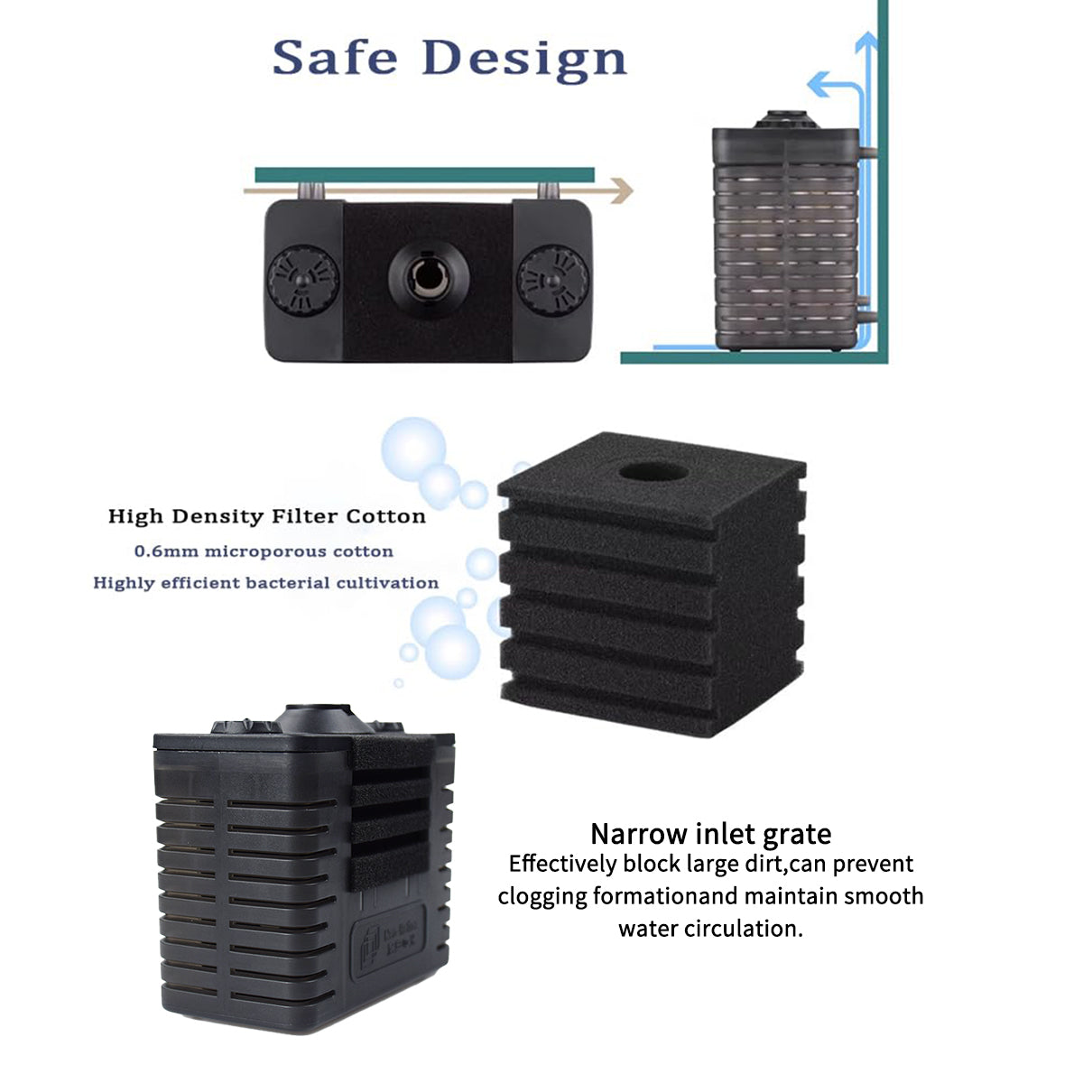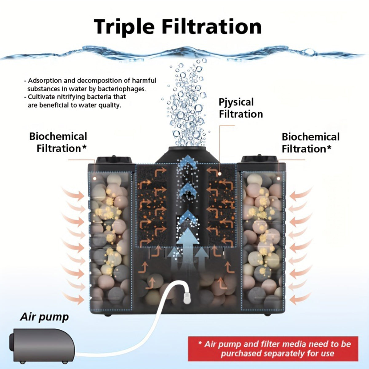3-in-1 Filtration & Circulation: Mechanical trapping + biological surface area for beneficial bacteria, plus upward flow that breaks surface film and boosts oxygen.